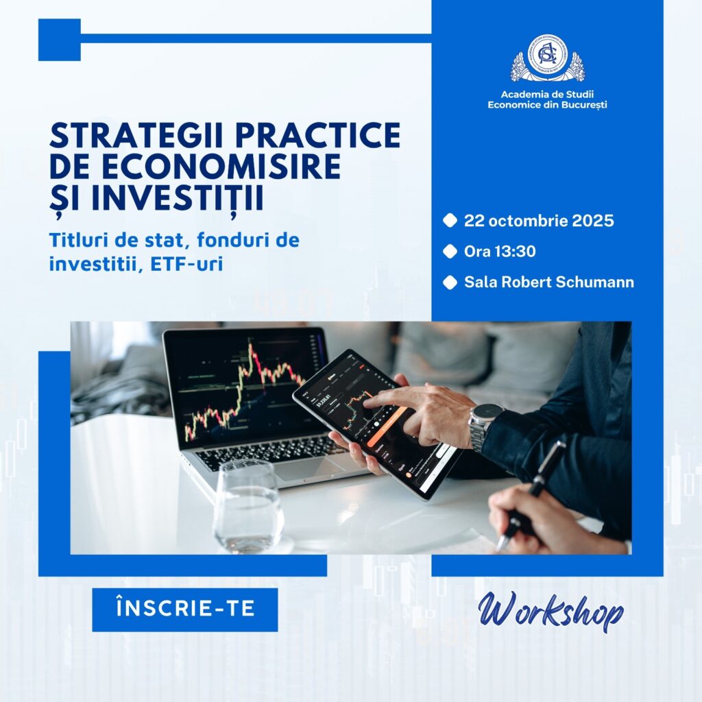 🎓 Academia de Studii Economice vă invită la workshop-ul „Strategii practice de economise și investiții”. Într-o lume în continuă schimbare, educația financiară nu mai este un lux, ci o necesitate. Acest workshop practic este dedicat tuturor celor care vor să înțeleagă cum pot economisi eficient și cum pot începe să investească, indiferent de venitul actual …