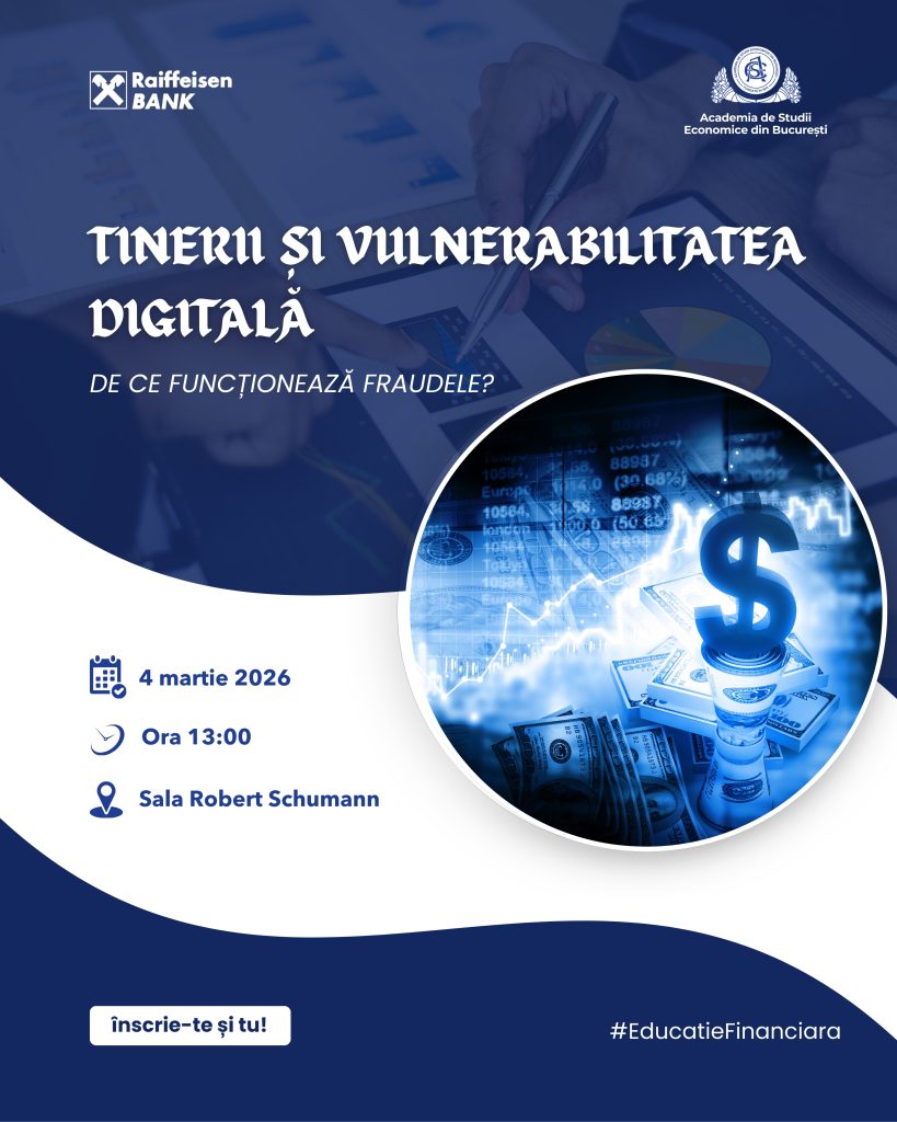 🎓 Fundația Academiei de Studii Economice vă invită la workshop-ul Tranzacții online sigure. Acest workshop practic este dedicat tuturor celor care să își dezvolte cunoștințele și abilitățile de identificare, prevenire și gestionare a fraudelor financiare online. 📅 Data: Miercuri, 11 martie 2026 🕒 Ora: 13:00 – 14:30 🏢 Locație: Sala Robert Schumann, accesul în sala …
